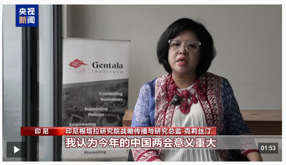 印尼根塔拉研究院战略传播与研究总监 克莉丝汀:我认为今年的中国两会意义重大,两会释放出的信息正是人们翘首以盼的,例如致力于推动多边主义,为加强多极世界格局贡献力量,这些信号为全球经济注入了稳定性,为全球治理带来了更大的确定性。