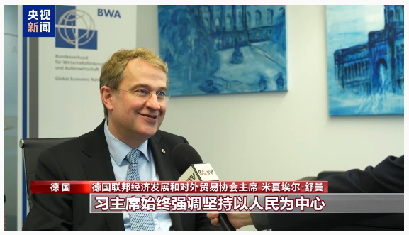 德国联邦经济发展和对外贸易协会主席 米夏埃尔·舒曼:习主席始终强调坚持以人民为中心,这一重要理念值得全球关注。在欧洲,发展不平衡问题加剧令人担忧,对此我们需要思考和调整。