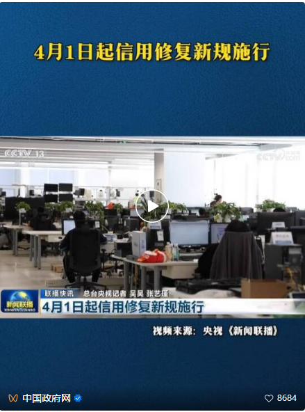 《信用修复管理办法》(国家发展改革委令第36号)正式施行