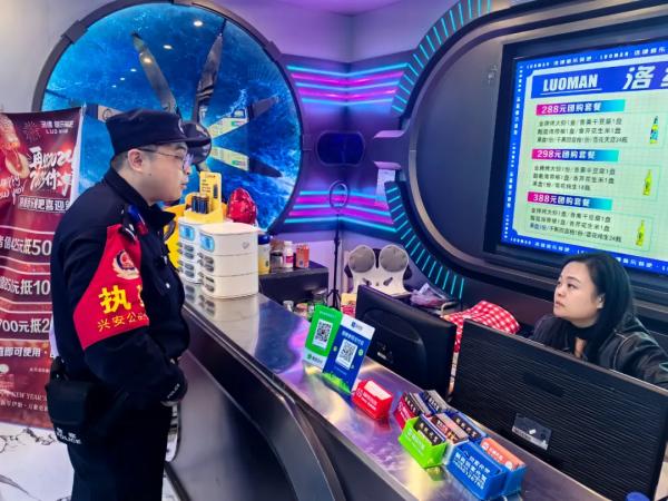 节日期间,兴安分局开启 “白 + 黑” 巡查模式。在辖区大型商超、农贸市场,民警重点检查消防设施是否完好有效、疏散通道是否畅通、应急照明是否正常,对发现的问题隐患当场下达整改通知书,要求负责人限期整改到位,并现场讲解消防安全知识,引导商户提高安全防范意识。