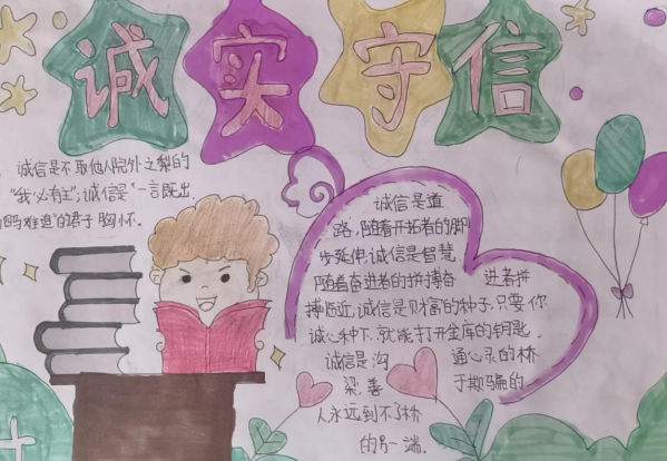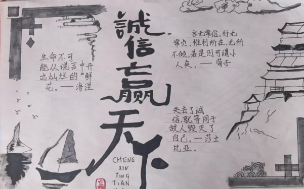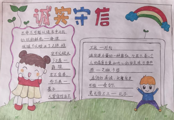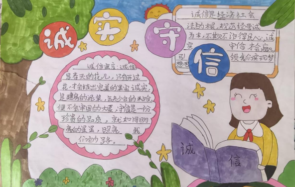 同学们精心创作诚信主题手抄报,用文字与画笔描绘诚信故事、书写诚信格言,一幅幅作品生动展现了对诚信的理解与向往。