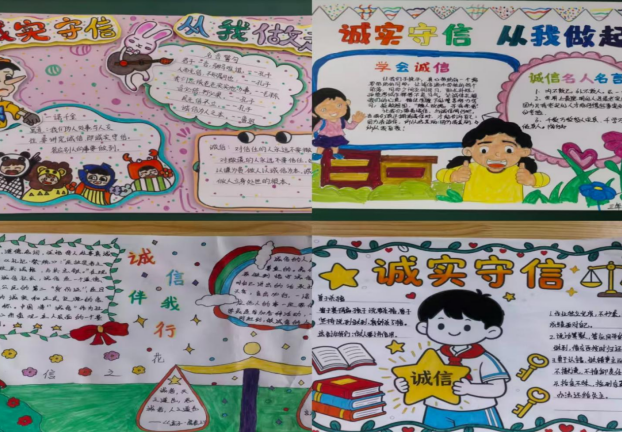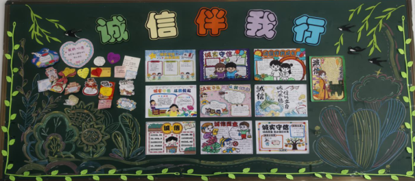 以笔墨绘诚,营造浓厚氛围。充分发挥校园宣传阵地育人作用,组织各班精心制作诚信主题黑板报,让教室墙面成为传递诚信理念的“无声课堂”;开展诚信主题手抄报比赛,学子们以笔为媒、以画为语,勾勒诚信形象、书写诚信感悟,让诚信文化融入校园每一处角落,让学子在笔墨书香中接受诚信熏陶。
