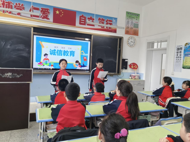主题班会以多元形式践行文明规范。低年级通过诚信小故事、文明儿歌传唱,启蒙礼仪意识;中高年级围绕校园真实案例开展讨论,辨析是非、纠偏行为,探讨网络时代诚信践行、诚信宣誓等展现文明行为。